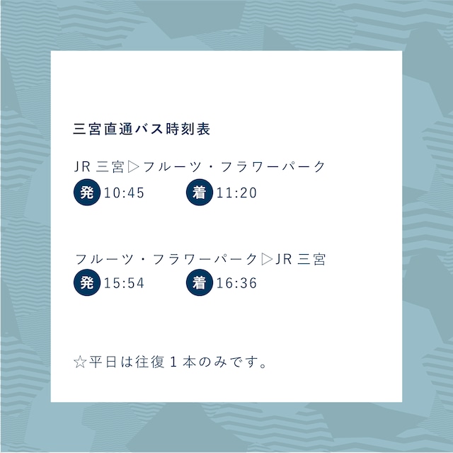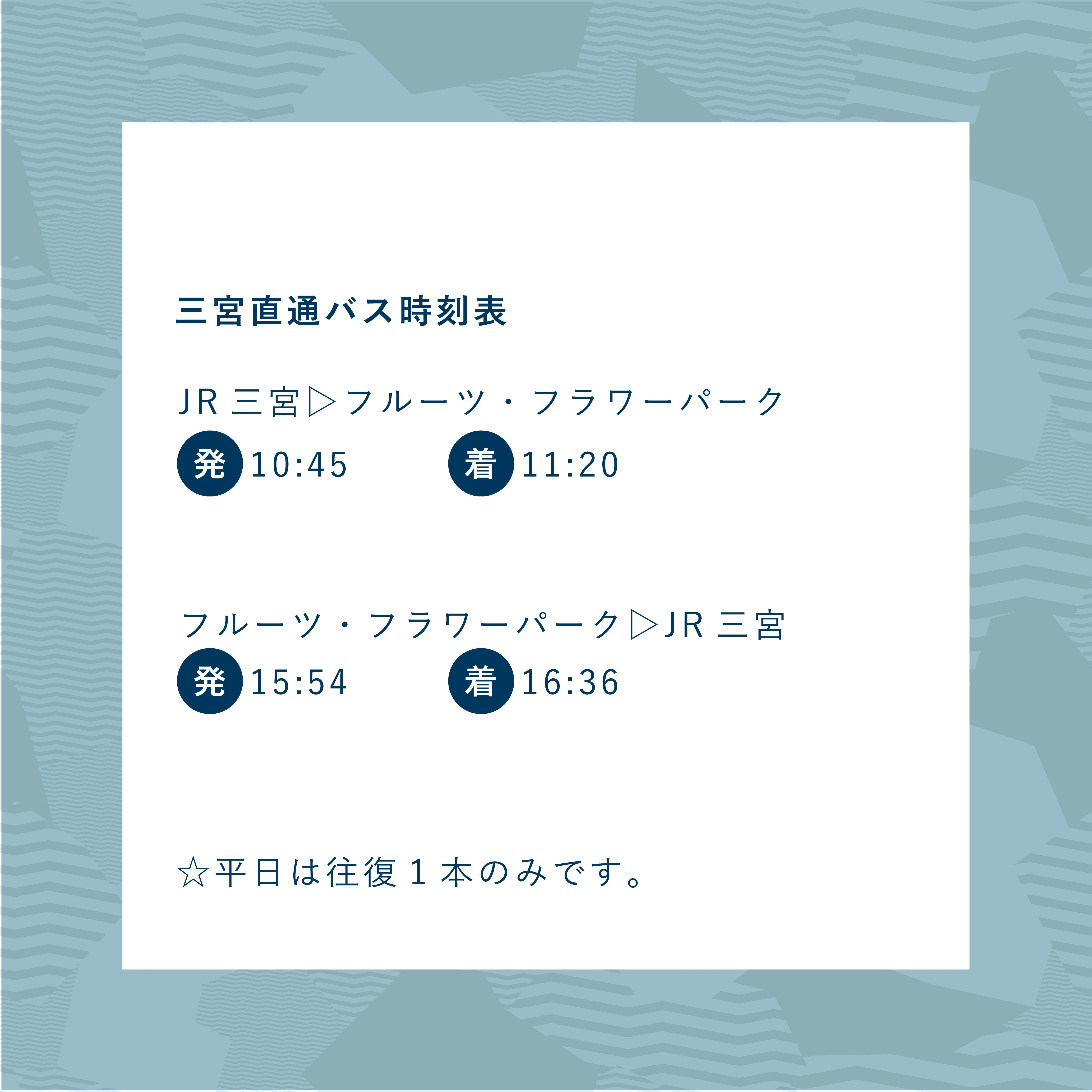 ☆バス時刻表はこちらからご確認ください▶︎https://fruit-flowerpark.jp/wp/wp-content/uploads/2025/03/r70330_bus.pdf